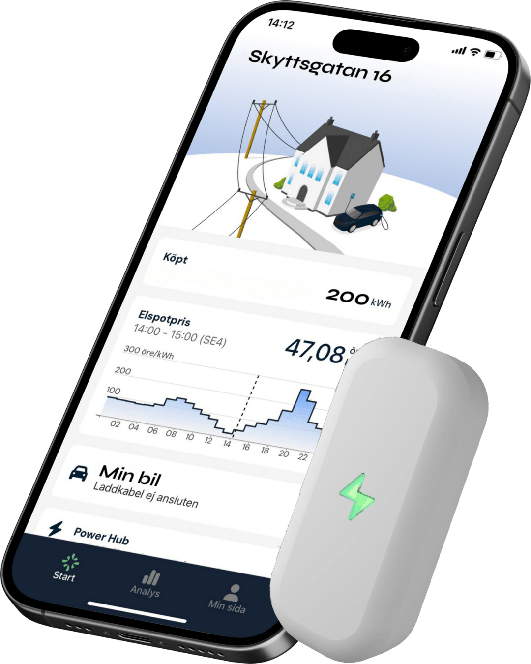 Och med vår Power hub kan du bland annat se din elförbrukning i realtid, ladda elbilen smartare och spara både energi och pengar.