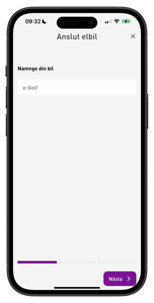 Efter detta kommer användaren tillbaka till appen och får namnge bilen: