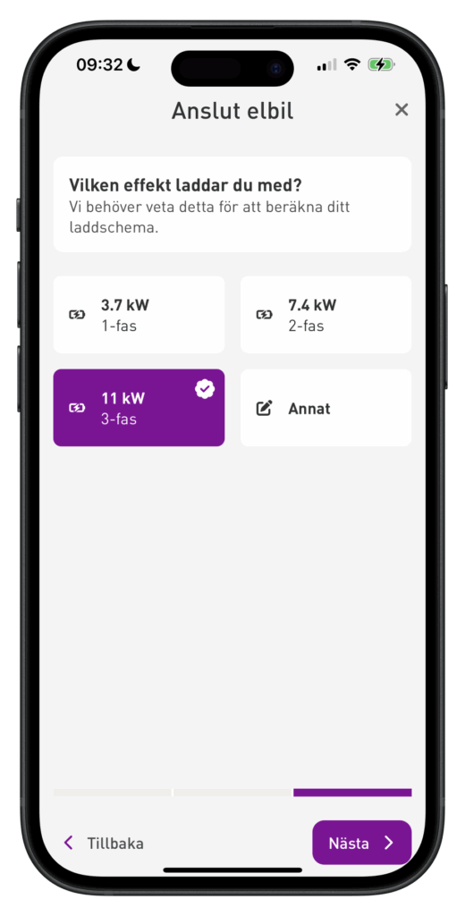 Och sedan välja vilken effekt bilen laddas med: